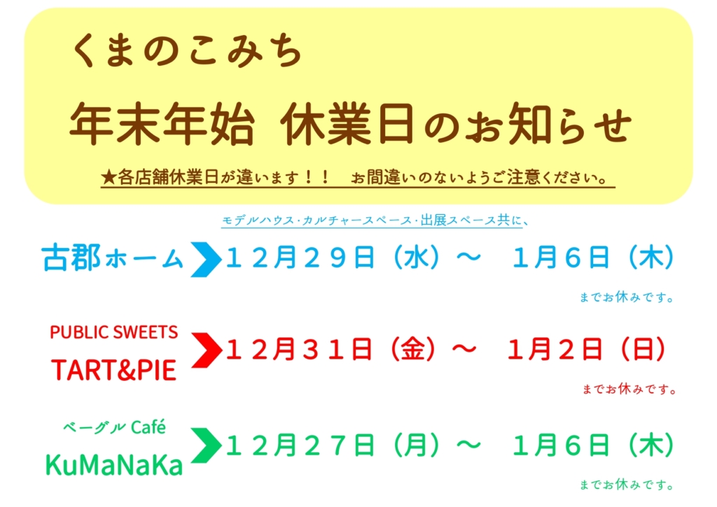 年末年始 休業日のお知らせ 2021 12/25 お知らせ 年の瀬も迫り、今年も残りわずかとなりました。皆さまには、本年も大変お世話になり心より感謝しております。 どうぞよいお年をお迎えくださいませ! お知らせ URL Copied! カルチャースクール&ワンデイショップ再開のご案内 2021年10月 PUBLIC SWEETS TART&PIE 定休日変更のお知らせ_2022.02.01