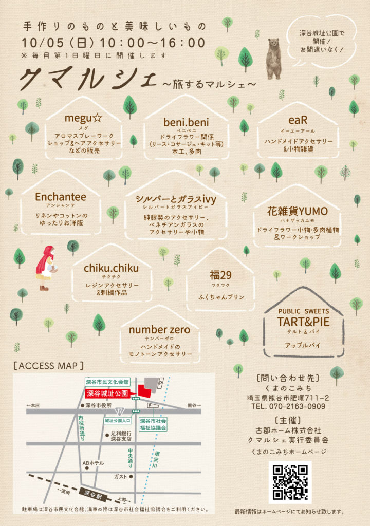 くまのこみちにて第1日曜日開催のクマルシェ…(開催月:9.10.11.12.3.4.5.6)