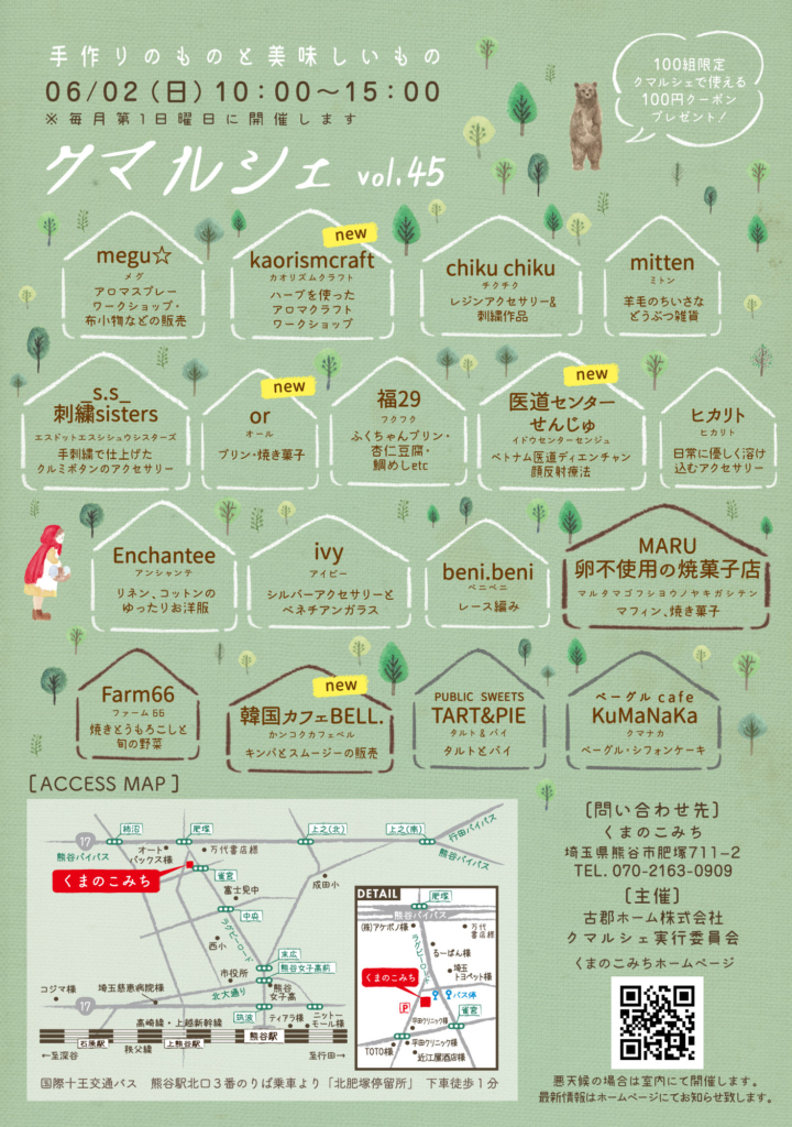 次回、45回目のクマルシェは…6月2日(日)10:00~15:00
