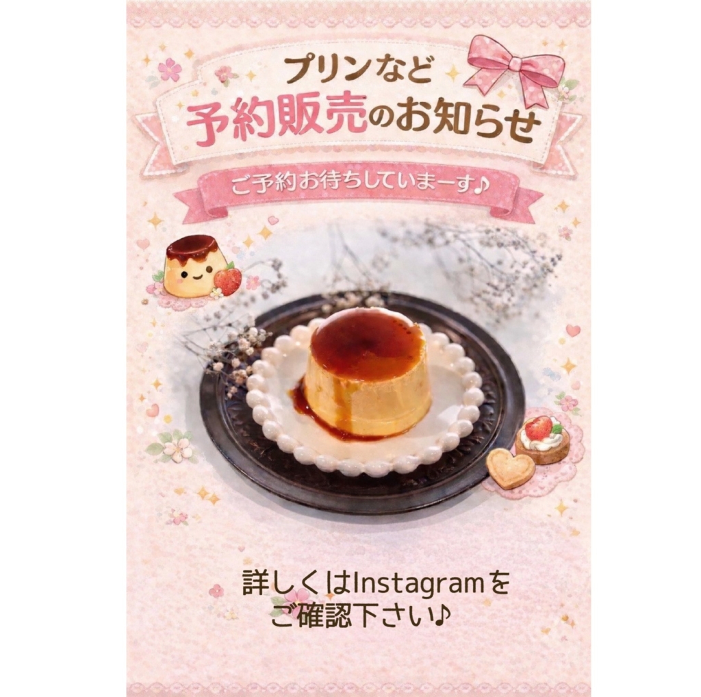 ふくちゃんプリン等の予約販売今回から予約販売となります。内容はInstagramをご確認下さい♪開催日の5日前までにご連絡下さい。(InstagramのDM・LINE・メール等)こちら... -