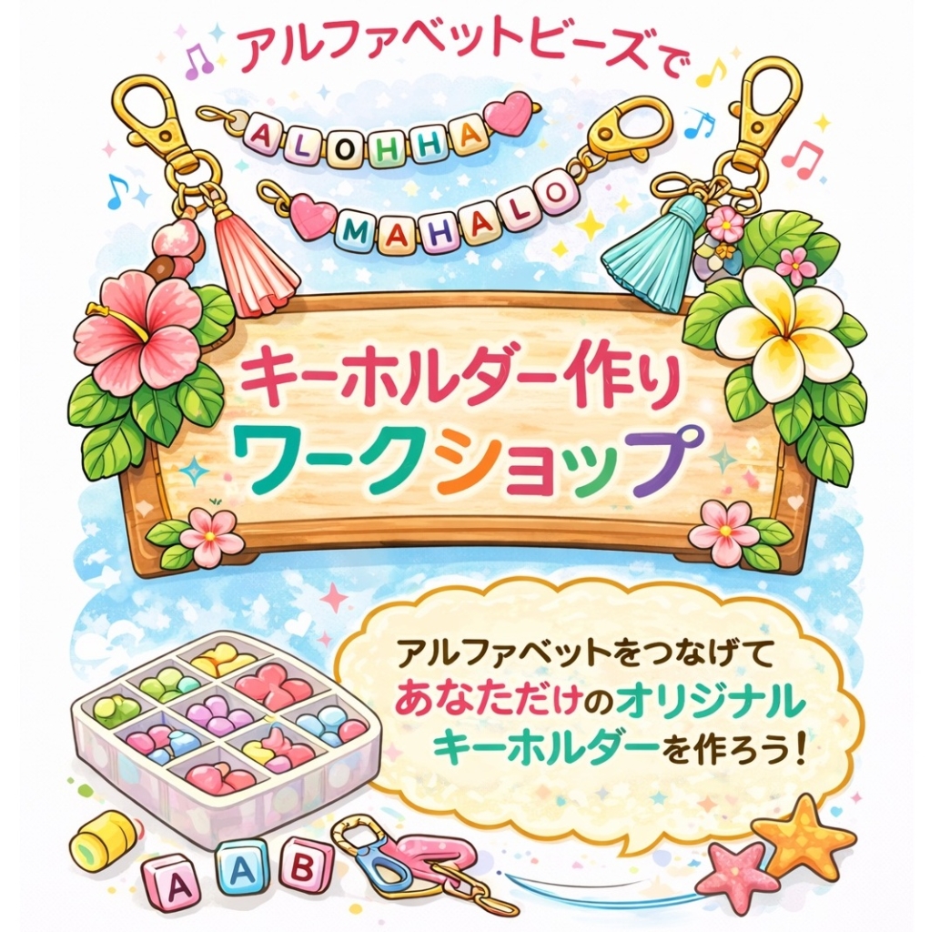 オリジナルキーホルダー作りのワークショップワークショップアルファベットビーズをつなげてあなただけのオリジナルキーホルダーを作ろう!https://instagram.com/aynil... -